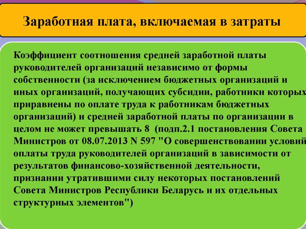 Заработная плата, включаемая в затратыКоэффициент соотношения средней заработной платы