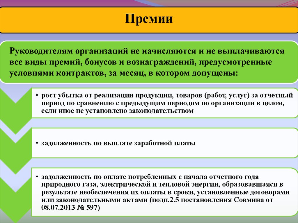 ПремииРуководителям организаций не начисляются и не выплачиваются