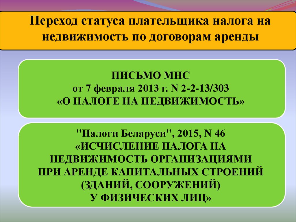 Переход статуса плательщика налога нанедвижимость по договорам аренды