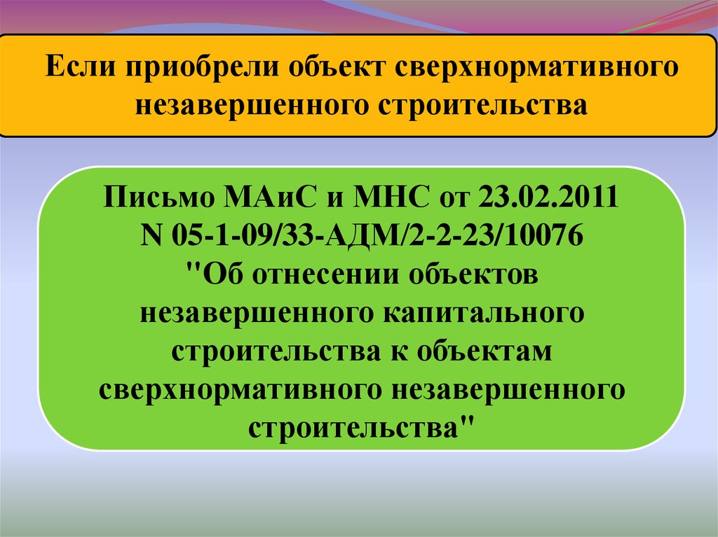 Если приобрели объект сверхнормативногонезавершенного строительства