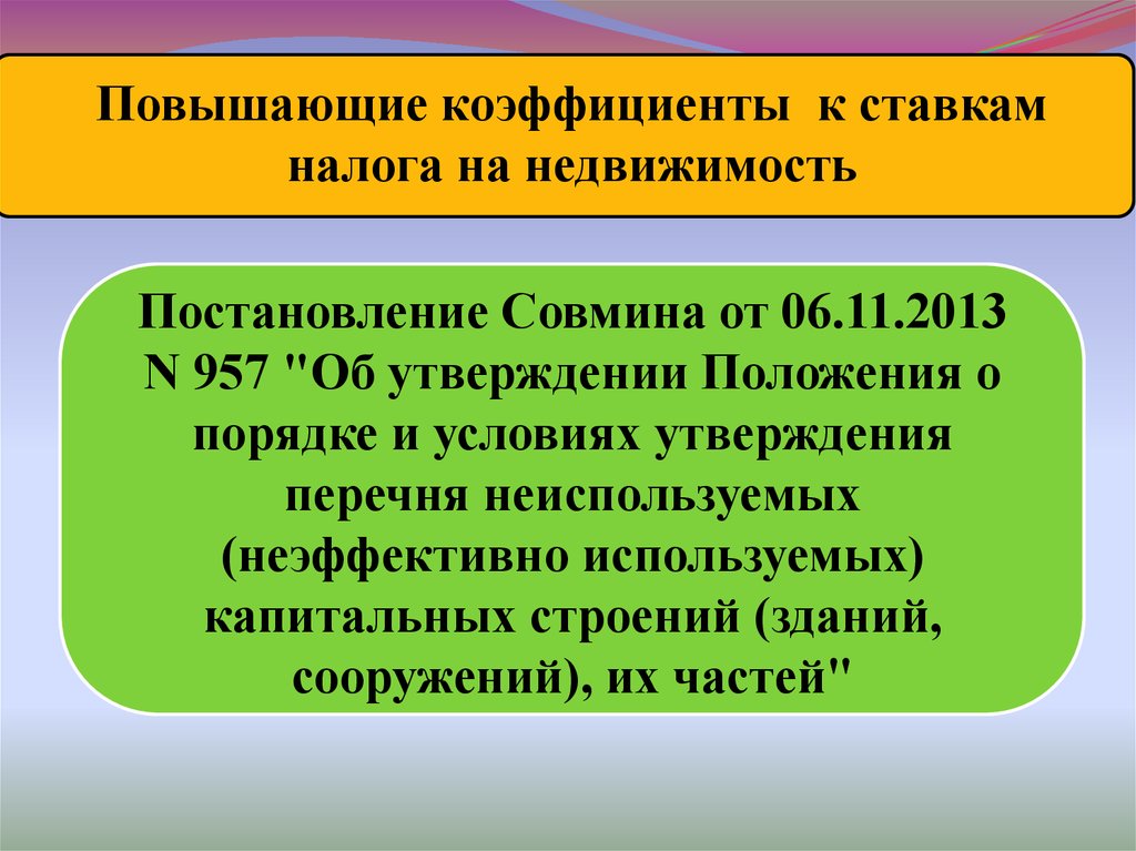 Повышающие коэффициенты к ставкамналога на недвижимость