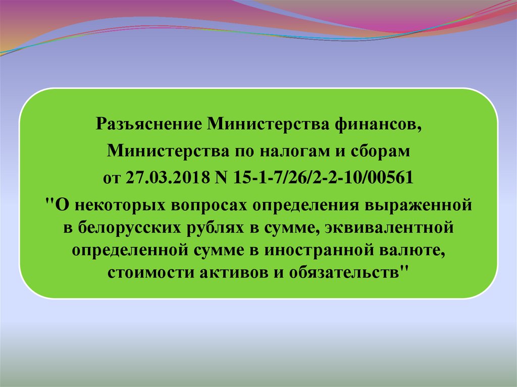 Разъяснение Министерства финансов,Министерства по налогам и сборам