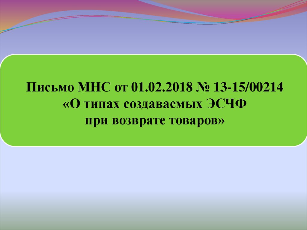 Письмо МНС от 01.02.2018 № 13-15/00214«О типах создаваемых ЭСЧФ