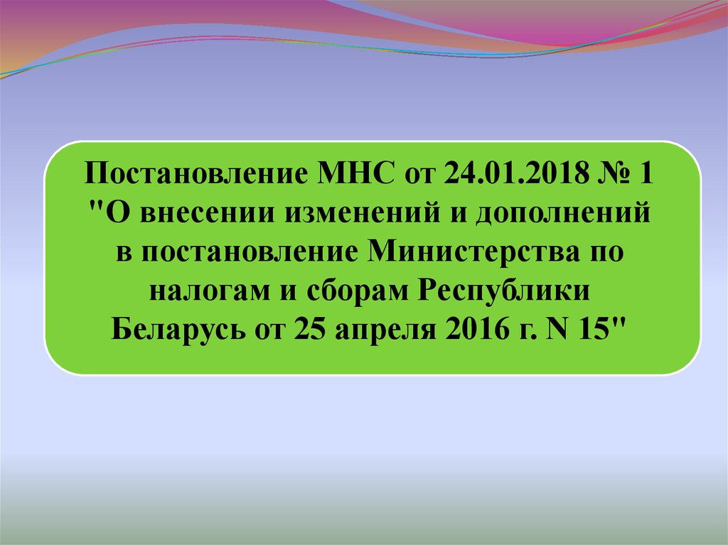Постановление МНС от 24.01.2018 № 1"О внесении изменений и дополнений