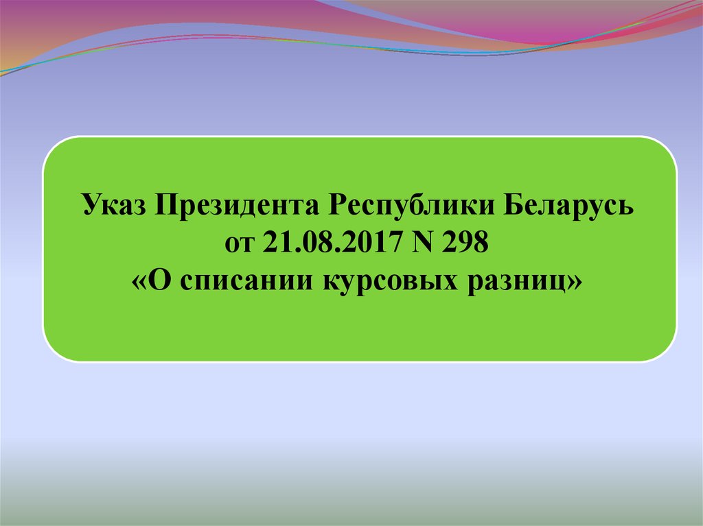 Указ Президента Республики Беларусьот 21.08.2017 N 298