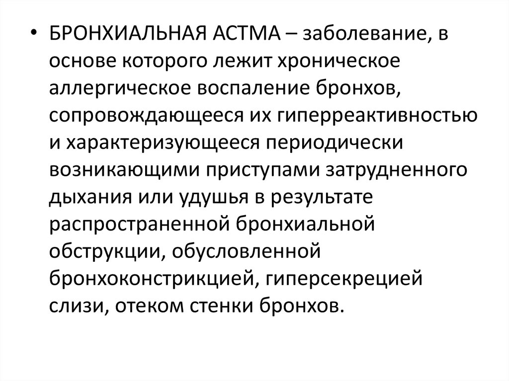 • БРОНХИАЛЬНАЯ АСТМА – заболевание, воснове которого лежит хроническое