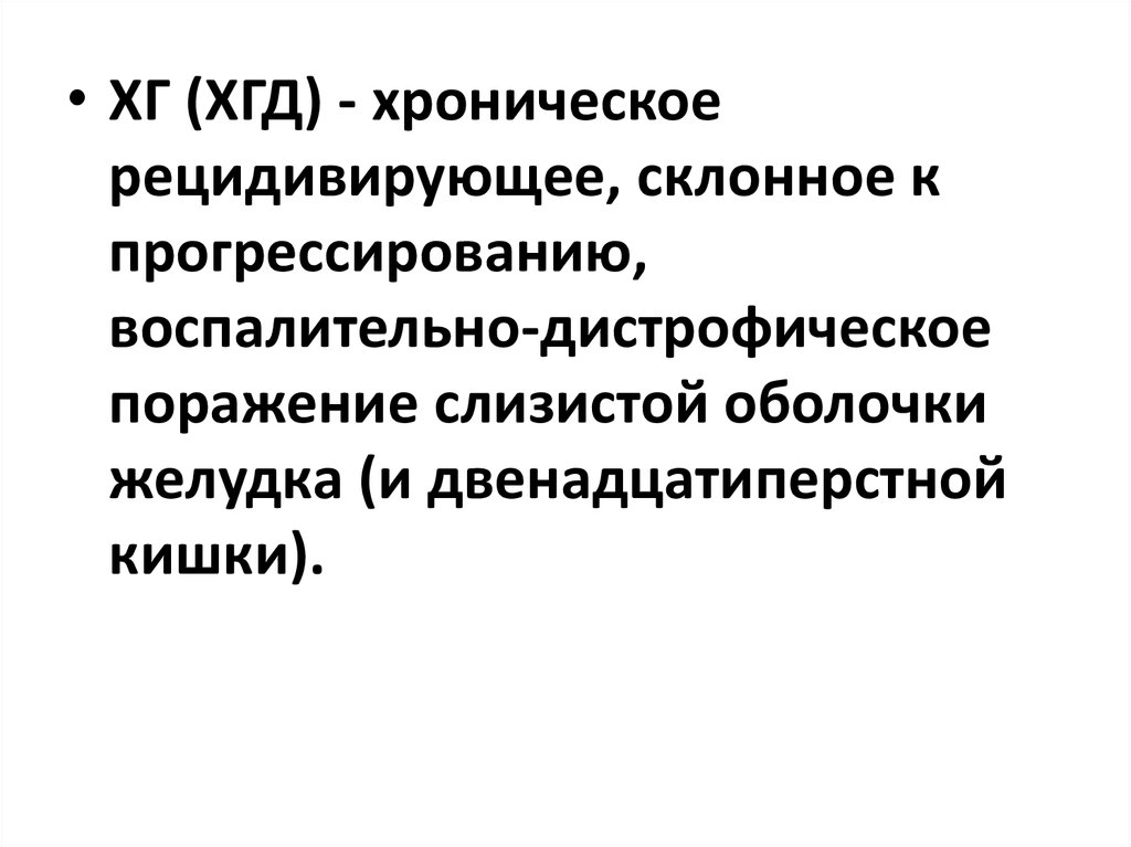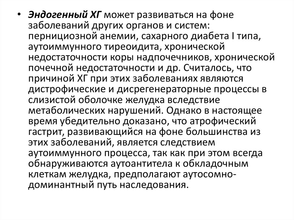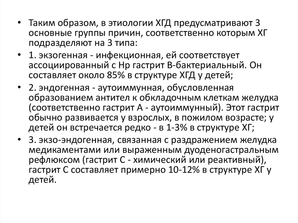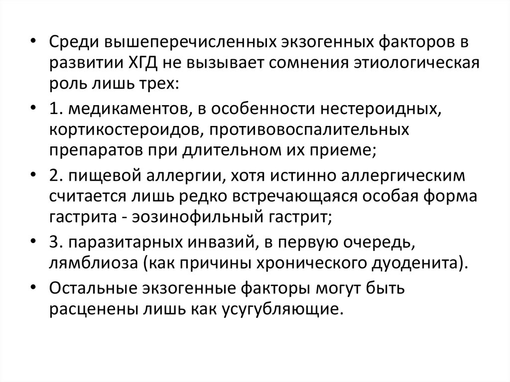 • Среди вышеперечисленных экзогенных факторов вразвитии ХГД не вызывает сомнения этиологическая