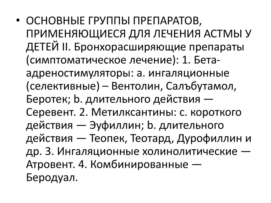 • ОСНОВНЫЕ ГРУППЫ ПРЕПАРАТОВ,ПРИМЕНЯЮЩИЕСЯ ДЛЯ ЛЕЧЕНИЯ АСТМЫ У