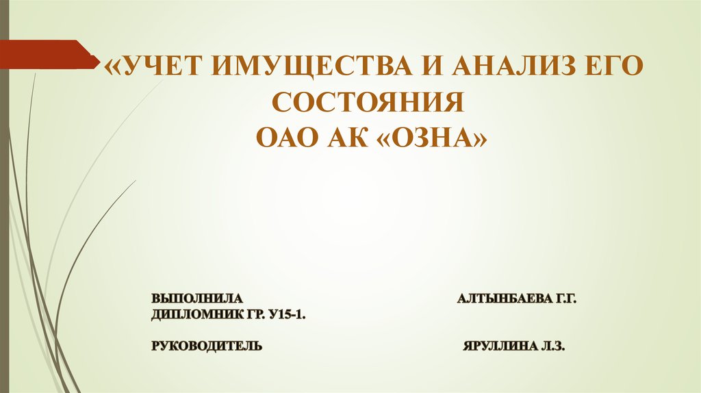 Учет имущества и анализ его состояния ОАО АК «ОЗНА»