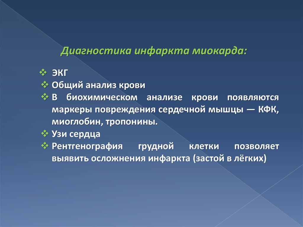 Учитывая, что ранняя диагностика инфаркта миокарда впервые часы заболевания базируется, главным образом,