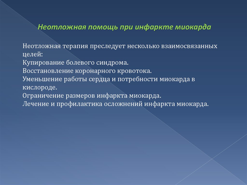 помощи при инфаркте миокарда на догоспитальномэтапе и принципы лечения.