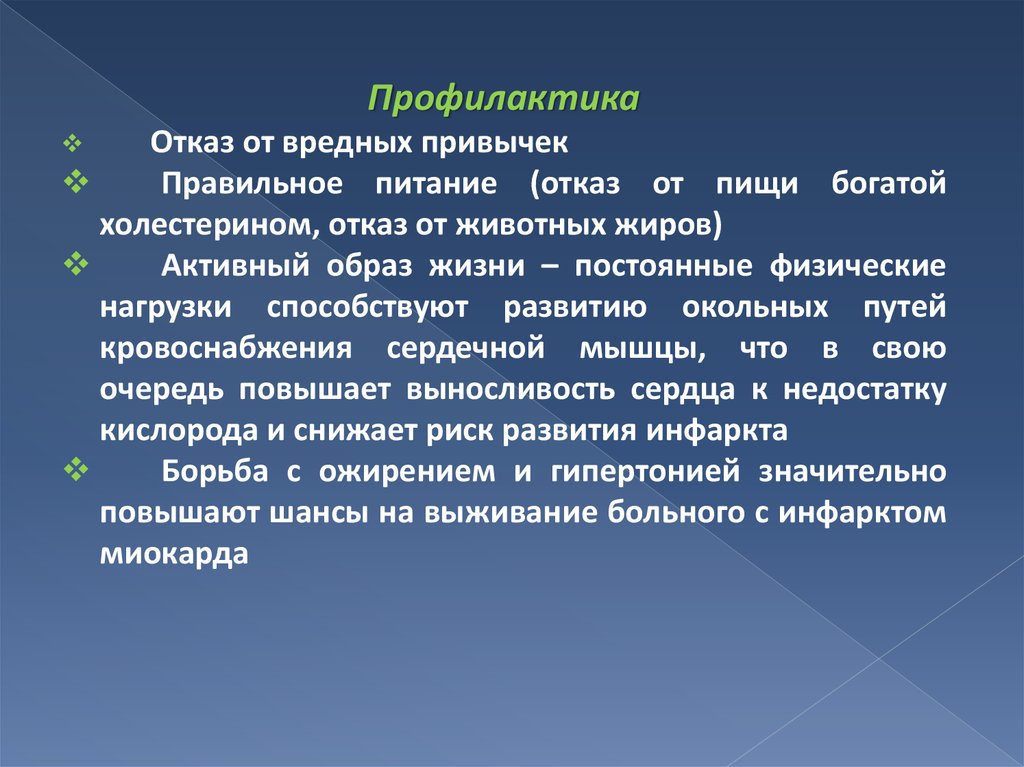 Изучить методы лечения и профилактики инфаркта миокарда.