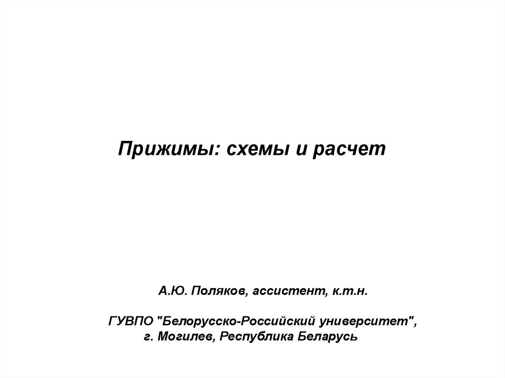 Прижимы: схемы и расчетА.Ю. Поляков, ассистент, к.т.н.