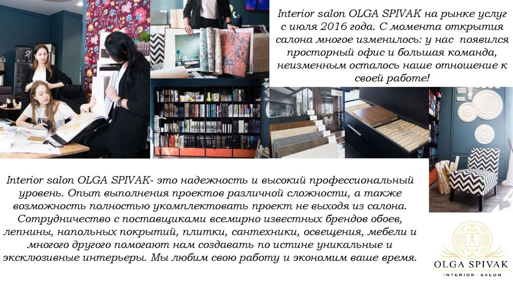 Interior salon OLGA SPIVAK на рынке услуг