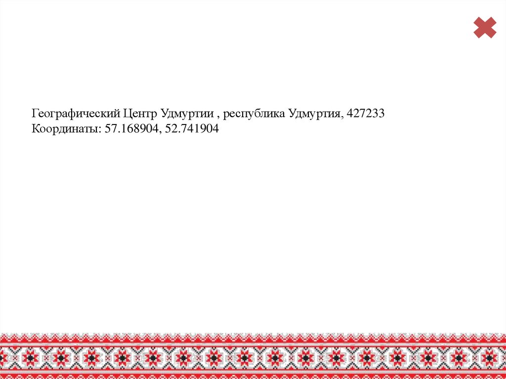 Географический Центр Удмуртии , республика Удмуртия, 427233Координаты: 57.168904, 52.741904