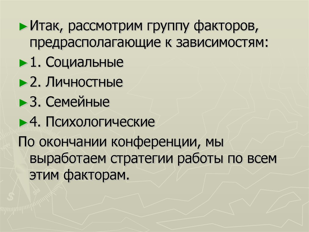 ► Итак,рассмотрим группу факторов,