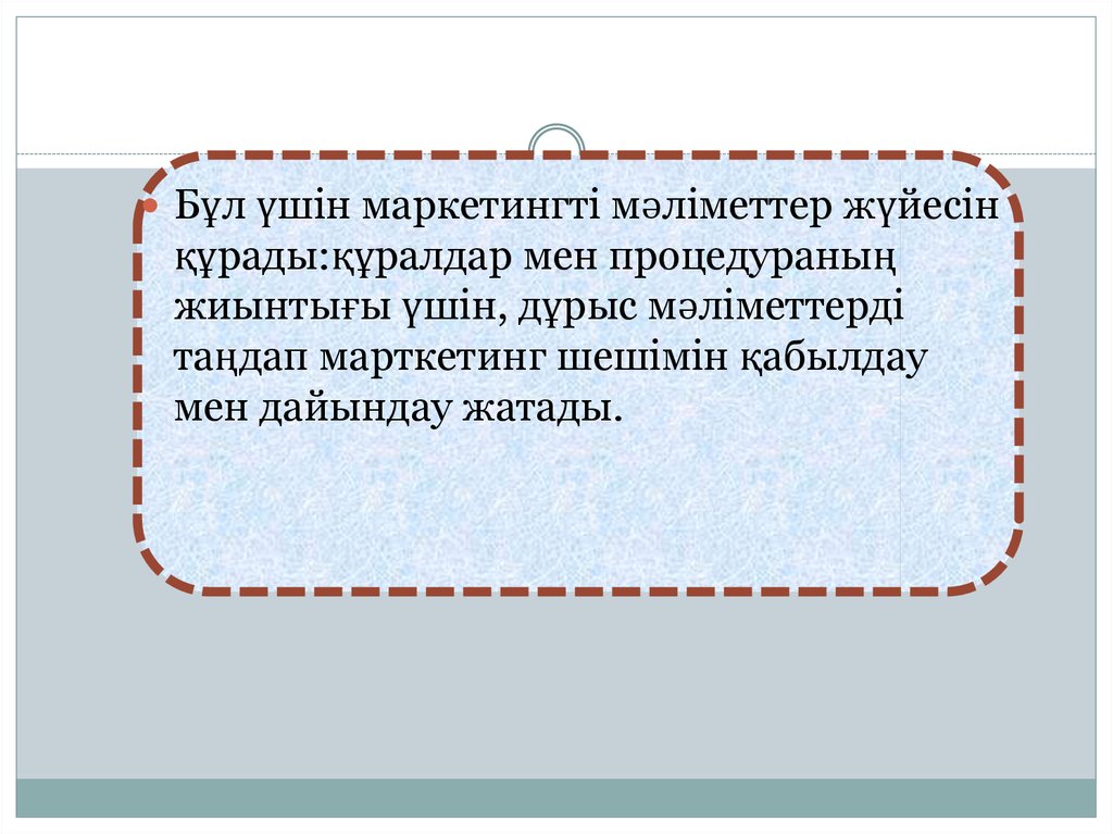 Бұл үшін маркетингті мәліметтер жүйесінқұрады:құралдар мен процедураның