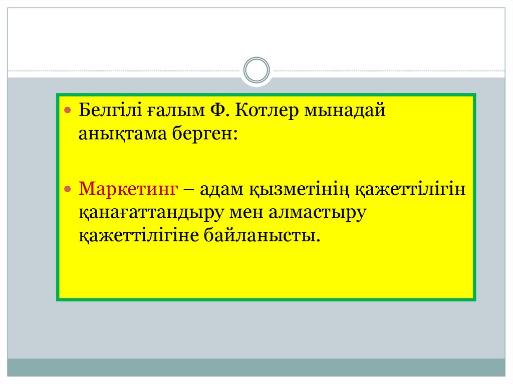 Белгілі ғалым Ф. Котлер мынадайанықтама берген: