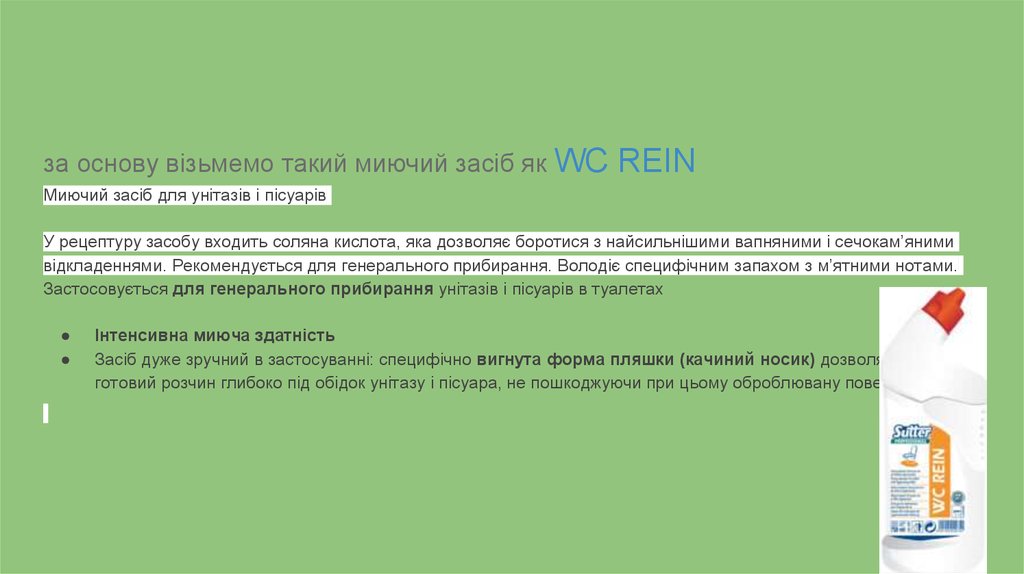 за основу візьмемо такий миючий засіб як WCREIN