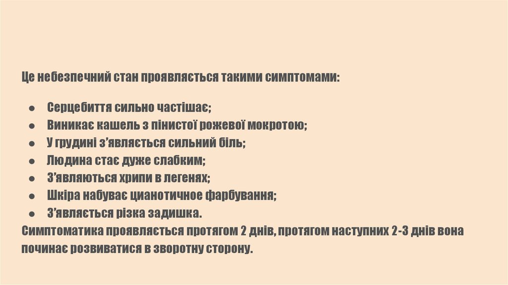 ● Виникає кашель з пінистої рожевої мокротою;