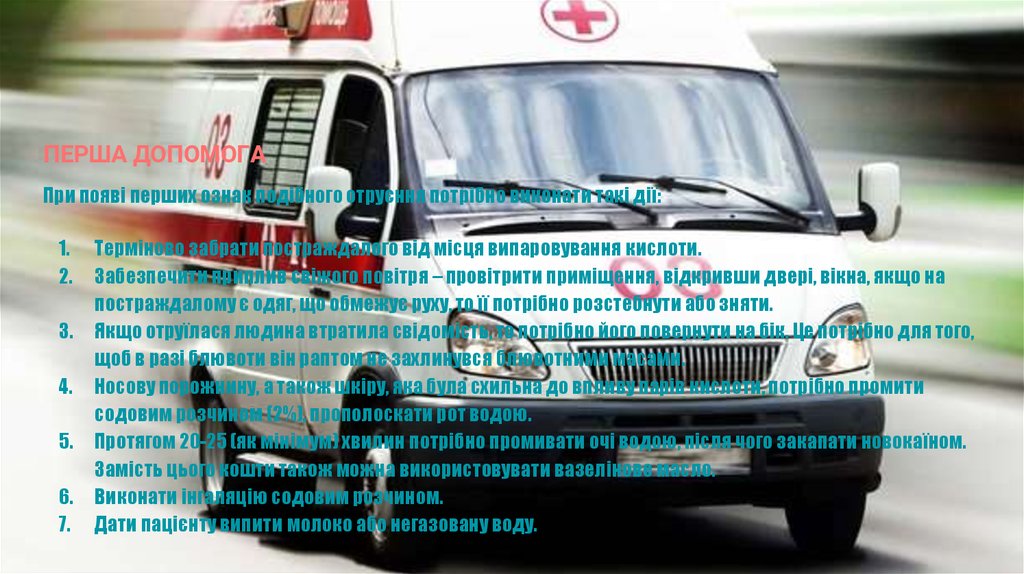 ПЕРША ДОПОМОГАПри появі перших ознак подібного отруєння потрібно виконати такі дії: