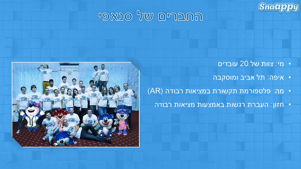 • מי :צוות של 20עובדים• איפה :תל אביב ומוסקבה