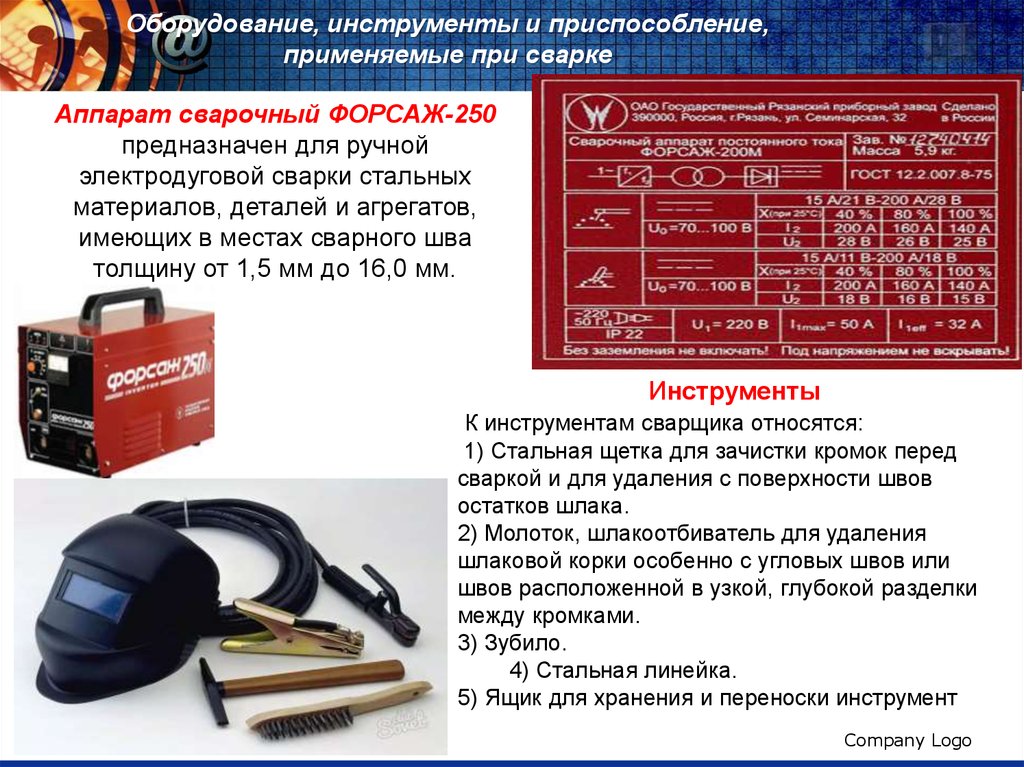 Оборудование, инструменты и приспособление,применяемые при сварке