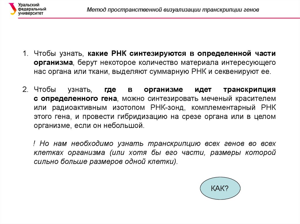 Метод пространственной визуализации транскрипции генов1. Чтобы узнать, какие РНК синтезируются в определенной части