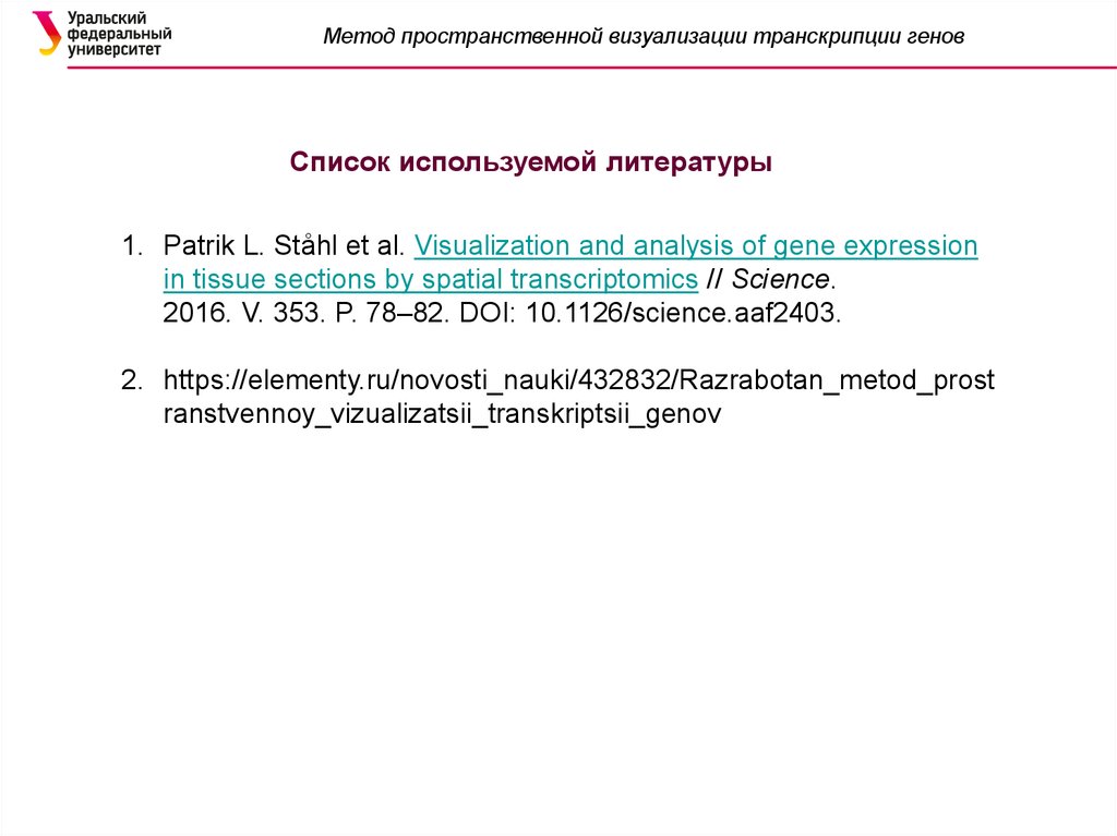 Метод пространственной визуализации транскрипции геновСписок используемой литературы