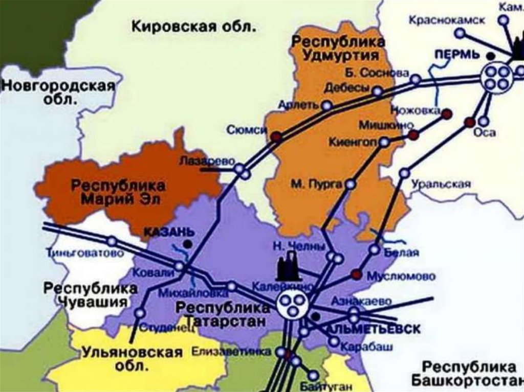 • Татарстан является крупнейшим в ВосточнойЕвропе центром трубопроводного транспорта.