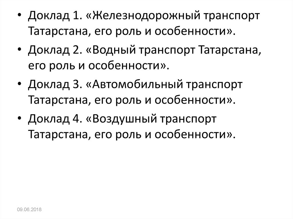 • Доклад 1. «Железнодорожный транспортТатарстана, его роль и особенности».