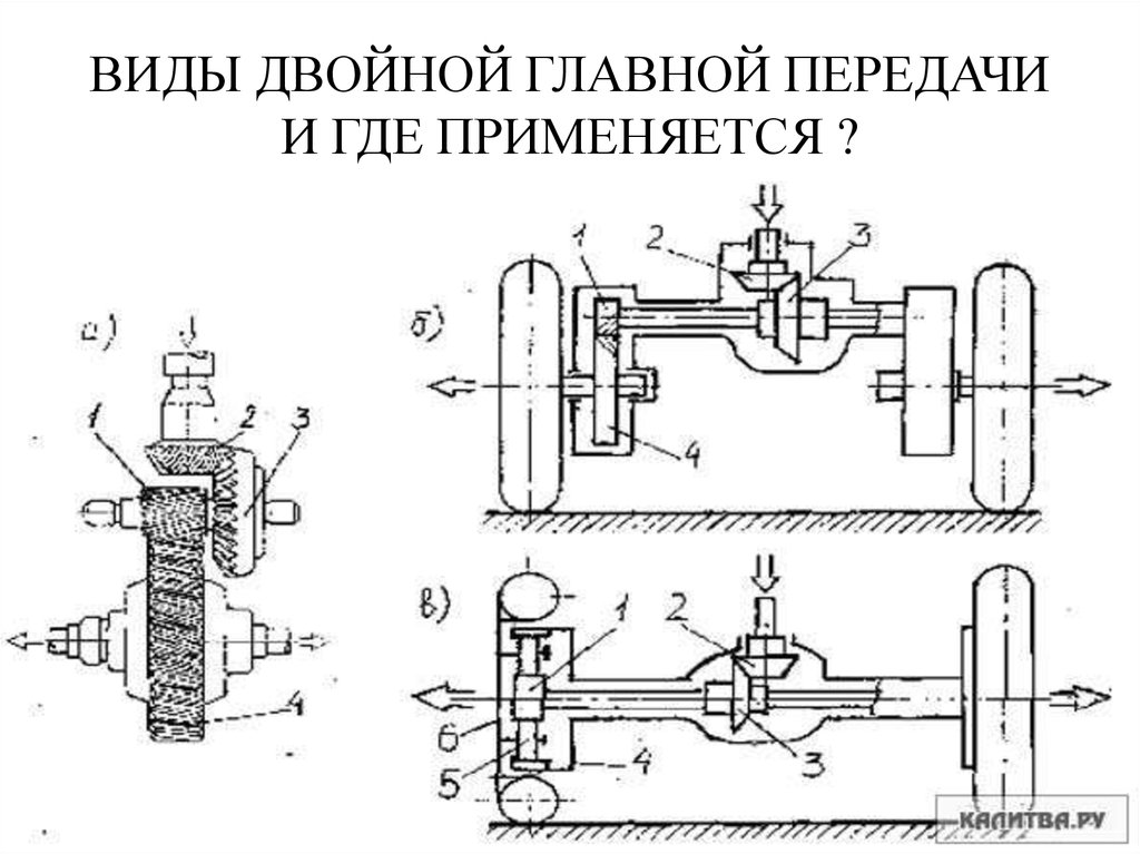 ВИДЫ ДВОЙНОЙ ГЛАВНОЙ ПЕРЕДАЧИ И ГДЕ ПРИМЕНЯЕТСЯ ?22.