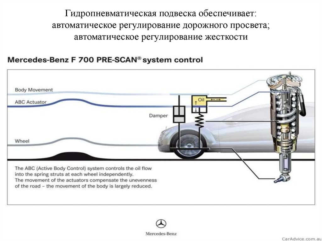 Гидропневматическая подвеска обеспечивает:автоматическое регулирование дорожного просвета;