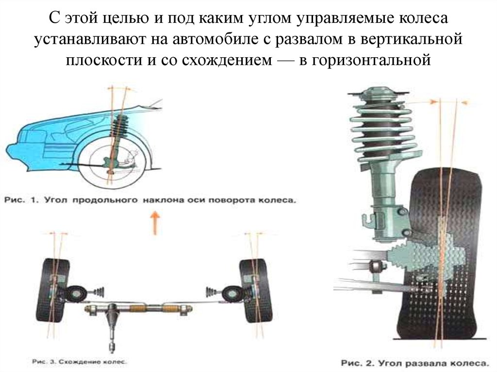 С этой целью и под каким углом управляемые колесаустанавливают на автомобиле с развалом в вертикальной