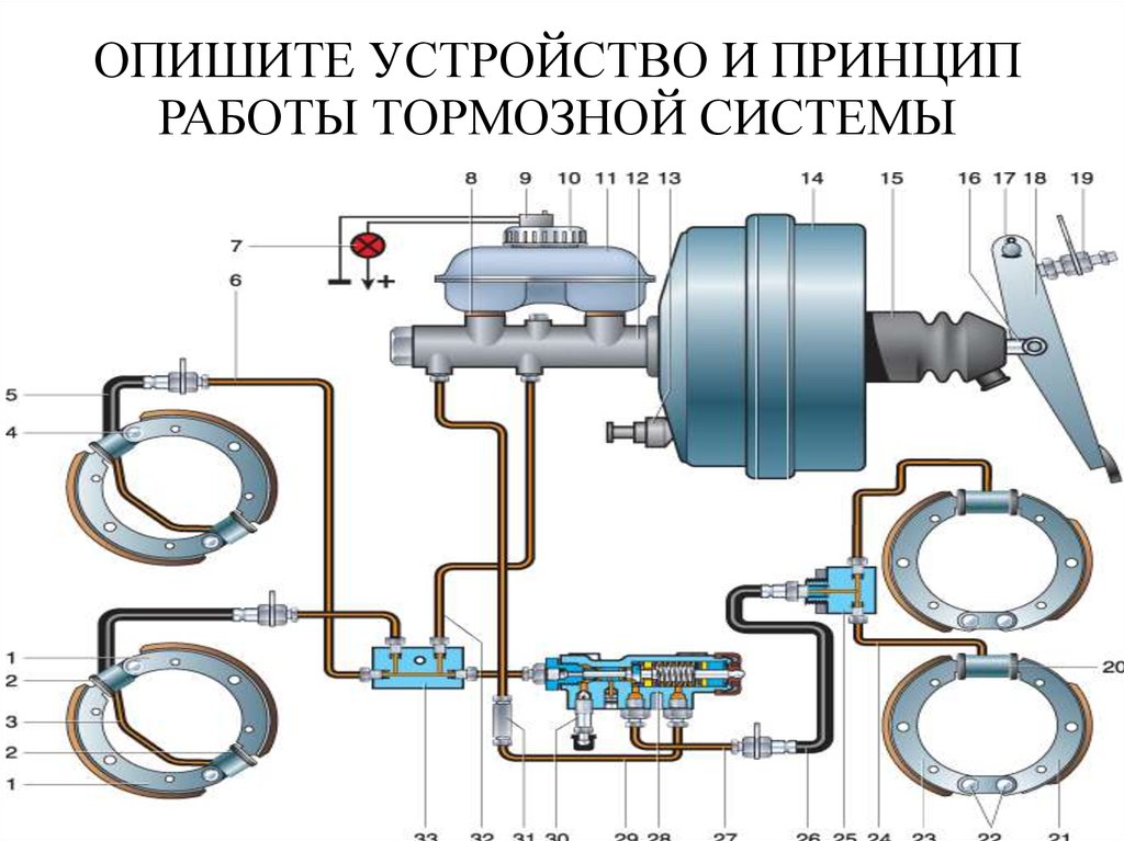 ОПИШИТЕ УСТРОЙСТВО И ПРИНЦИПРАБОТЫ ТОРМОЗНОЙ СИСТЕМЫ