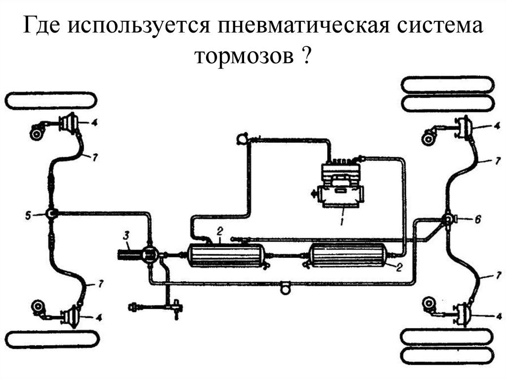 Где используется пневматическая систематормозов ?