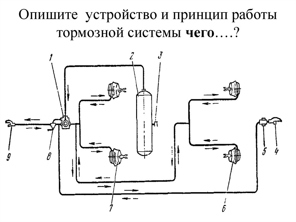 Опишите устройство и принцип работытормозной системы чего….?