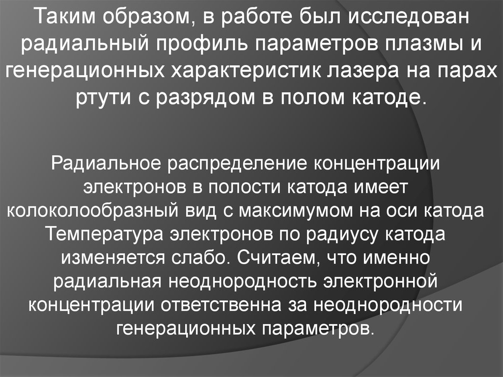 Таким образом, в работе был исследованрадиальный профиль параметров плазмы и