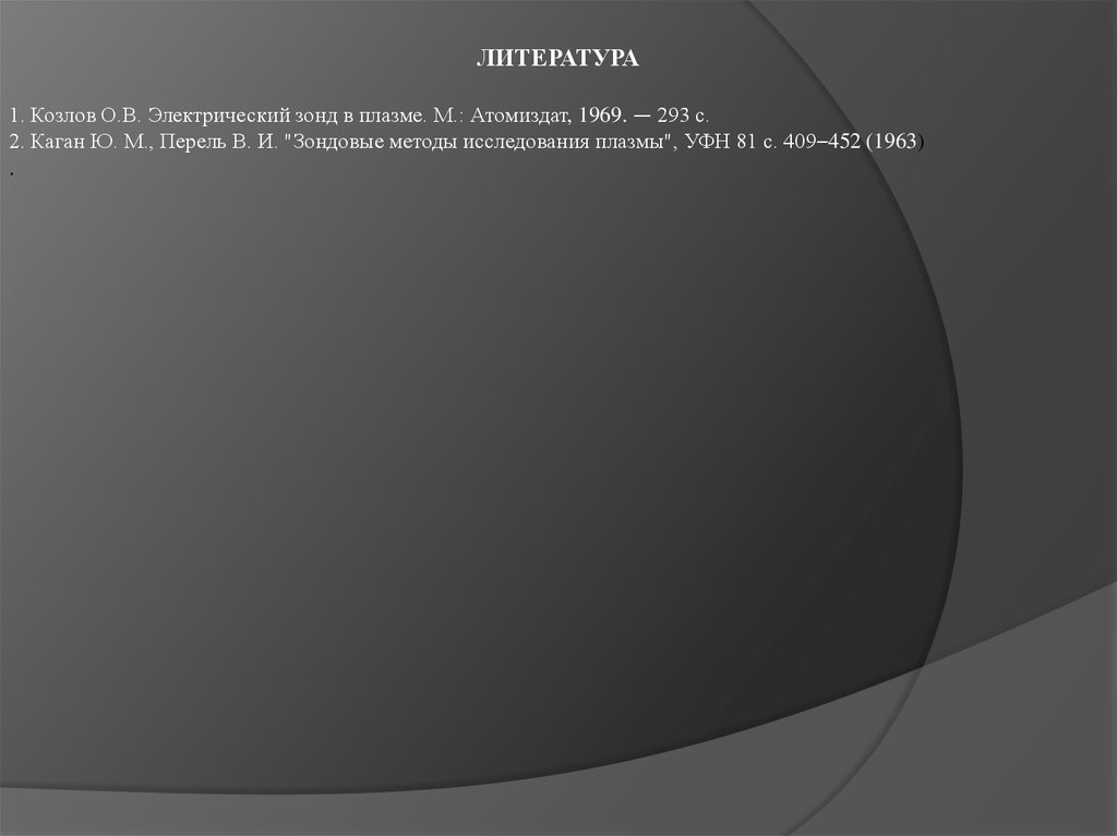 ЛИТЕРАТУРА1. Козлов О.В. Электрический зонд в плазме. М.: Атомиздат, 1969. — 293 с.