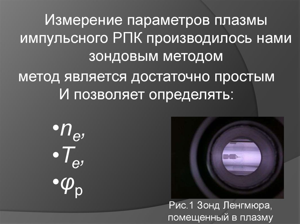 Измерение параметров плазмыимпульсного РПК производилось нами