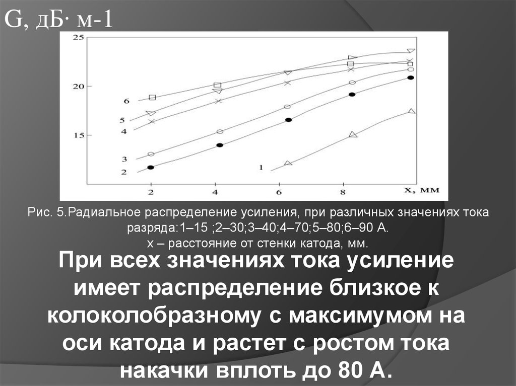 G, дБ∙ м-1Рис. 5.Радиальное распределение усиления, при различных значениях тока
