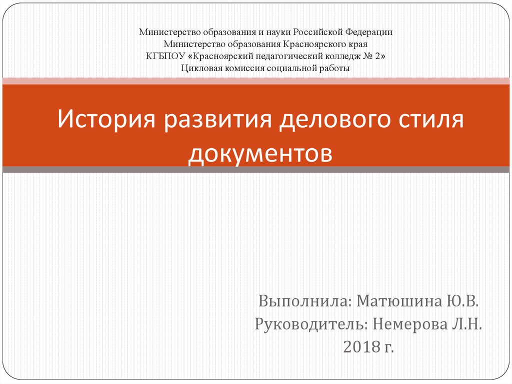 Предмет: Служебно-деловое письмоОбъект: История делового стиля документа