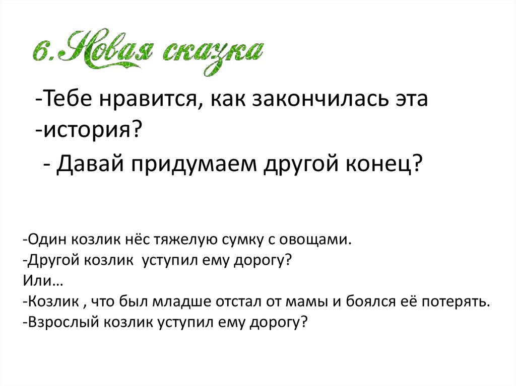 2. Когда мы придумали новую историю и козлики договорились, они были …