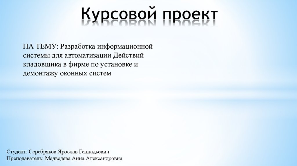 Разработка информационной системы для автоматизации действий кладовщика в фирме по установке и демонтажу оконных систем