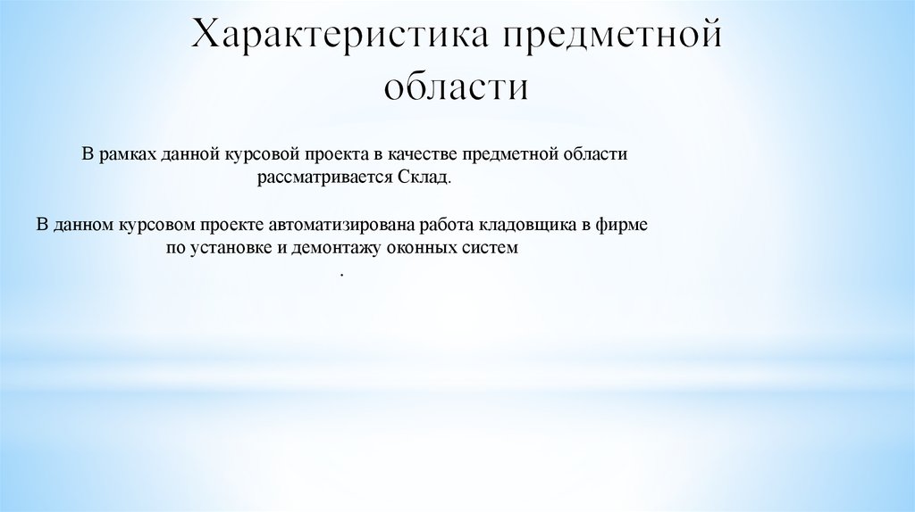 В рамках данной курсовой проекта в качестве предметной областирассматривается Склад.