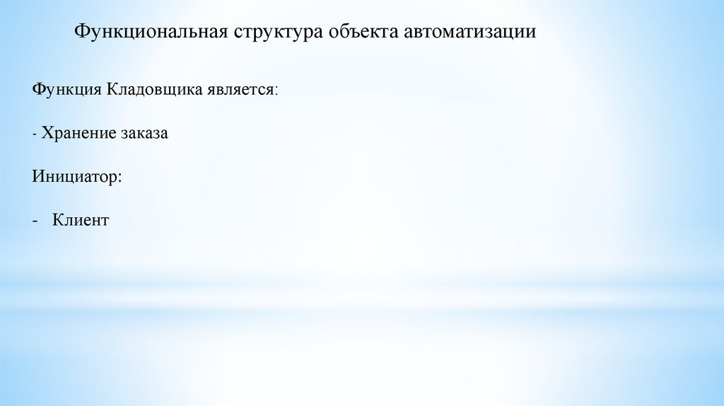Функциональная структура объекта автоматизацииФункция Кладовщика является:
