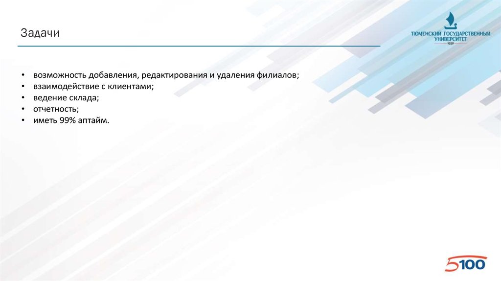 Задачивозможность добавления, редактирования и удаления филиалов;