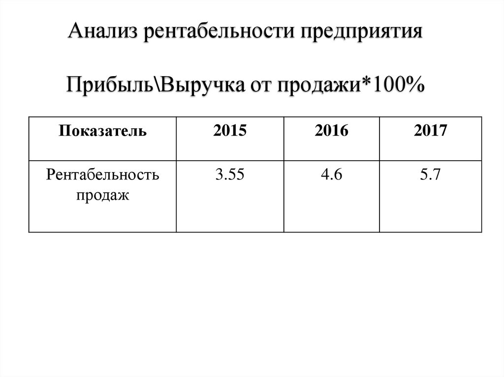 Анализ рентабельности предприятияПрибыль\Выручка от продажи*100%