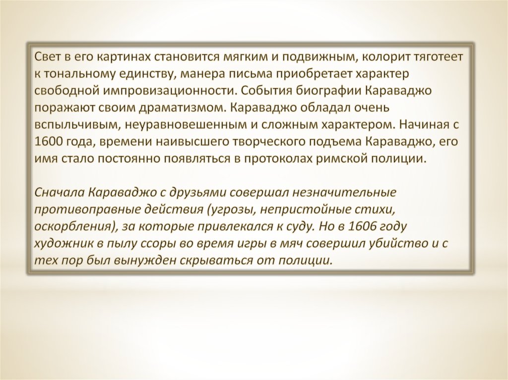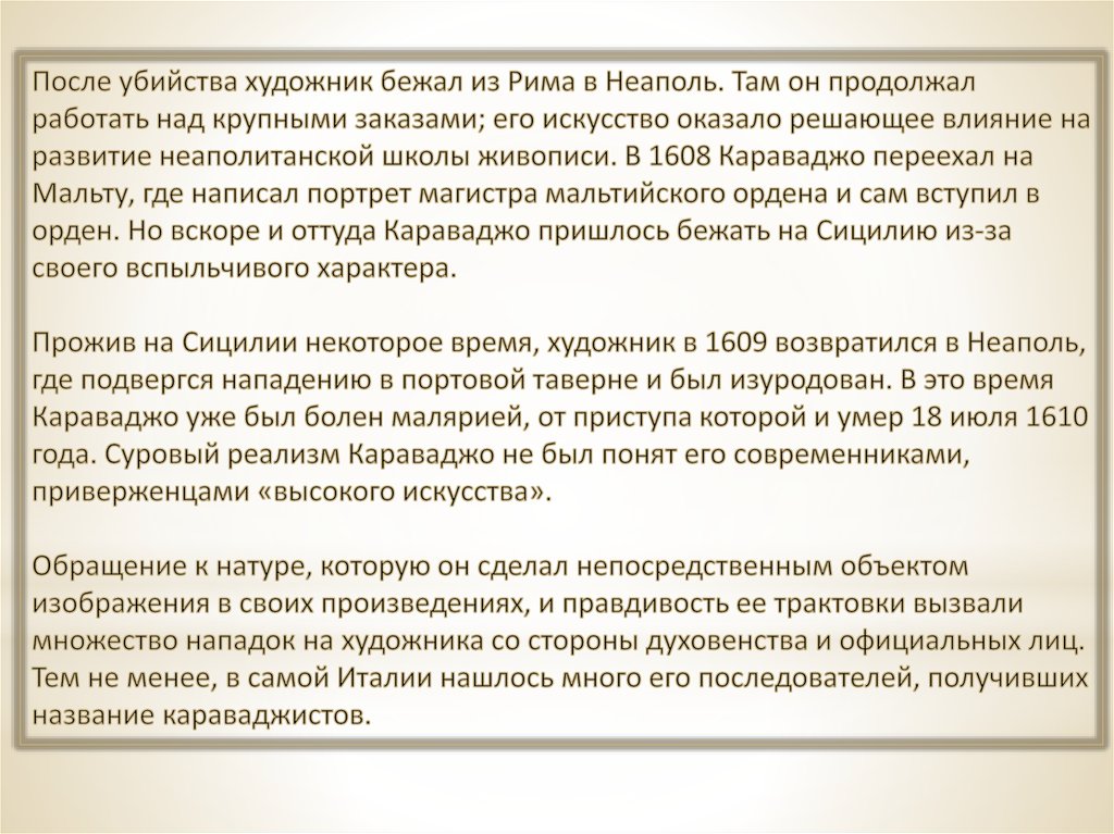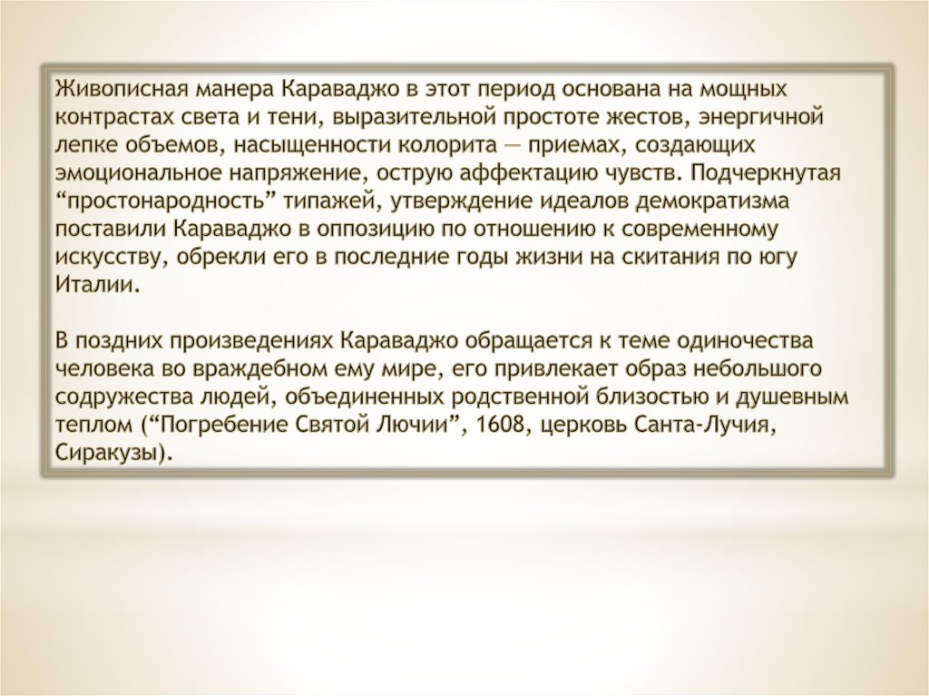 Творчество Караважо