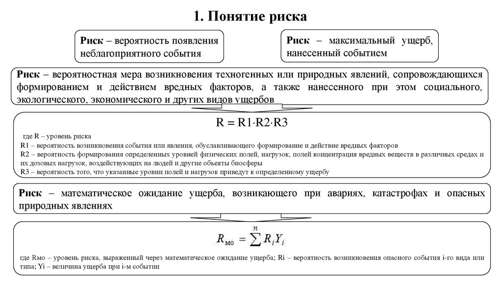 1. Понятие рискаРиск – вероятность появления
